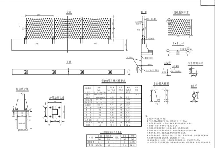 7.表面处理:立柱、连接件及金属网采用镀锌防腐处理。