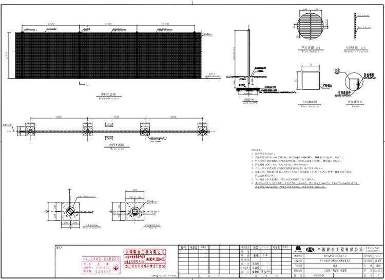 3.网片采用冷拔热镀锌钢丝电阻熔焊制成,钢丝抗拉强度≥500MPa,镀锌量≥120g/㎡ ;
