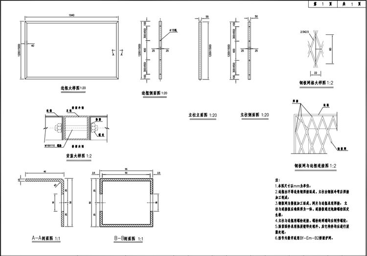 3.钢板网为整板加工而成,网片与边框采用焊接;立柱与连接板应确保焊为一体,连接板通过地脚螺栓固定生根。