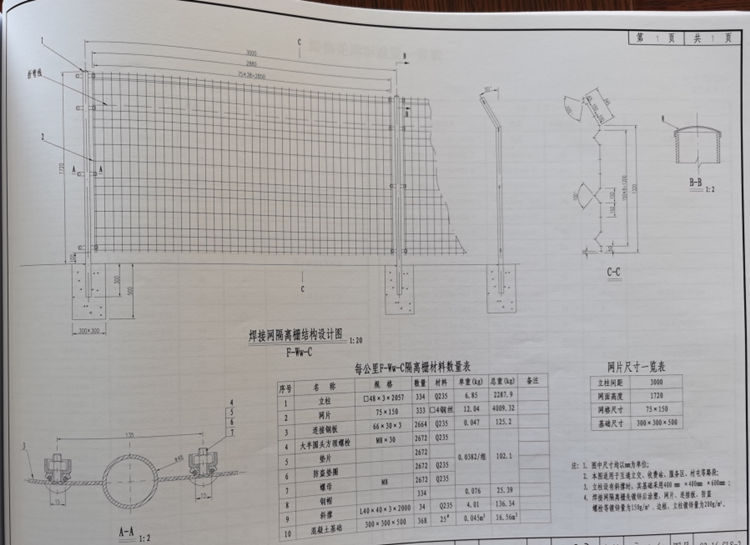 一、水源地一级保护区焊接网隔离栅设计要求: