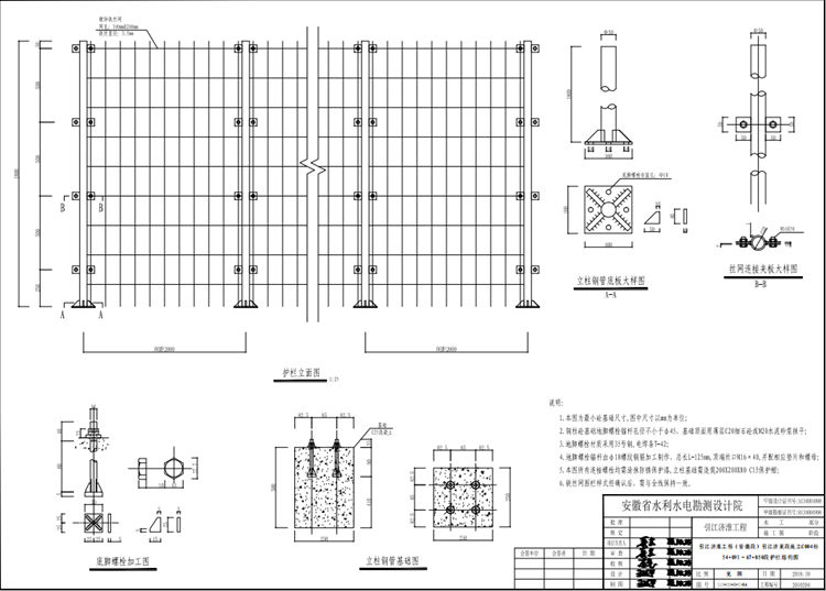 5.本图所有连接螺栓均需涂抹防锈保护漆,立柱基础需浇筑200X200X80C15保护帽;