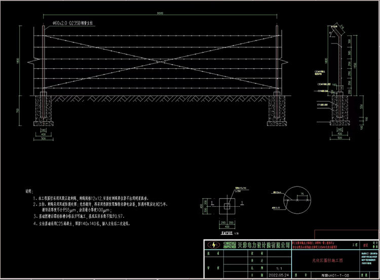 1、本工程围栏采用双股正捻刺绳,刺绳规格12#*12#,安装时刺绳要拉紧不出现明显弧垂。