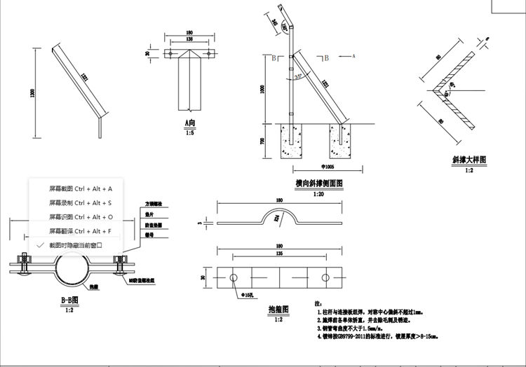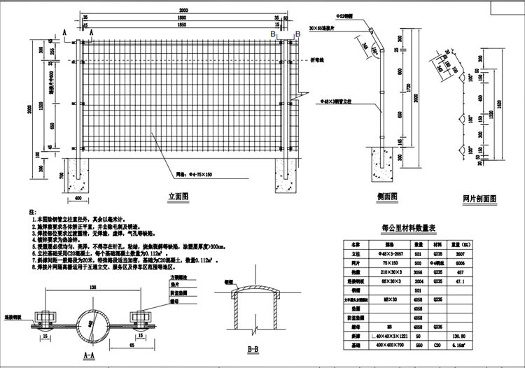 1.本图除钢管立柱直径外,其余以毫米计。