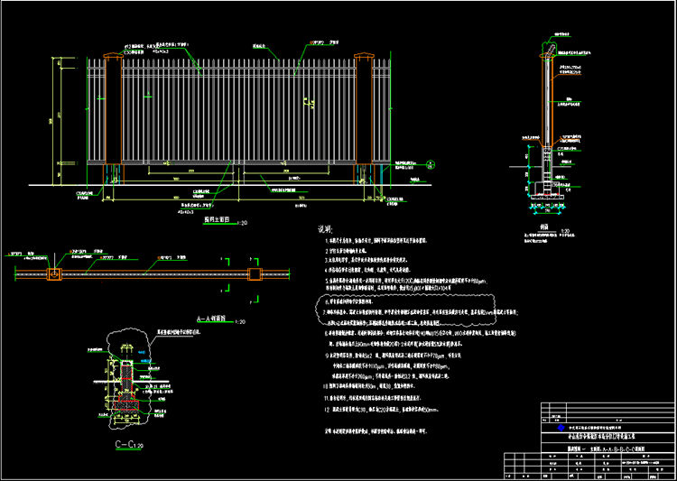 11、隔离栏杆除本说明外,均应遵照现行国家标准有关施工质量验收规范执行。