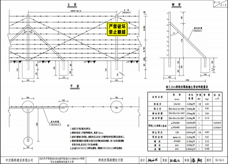 新疆伊犁高速公路刺铁丝隔离栅设计要求: