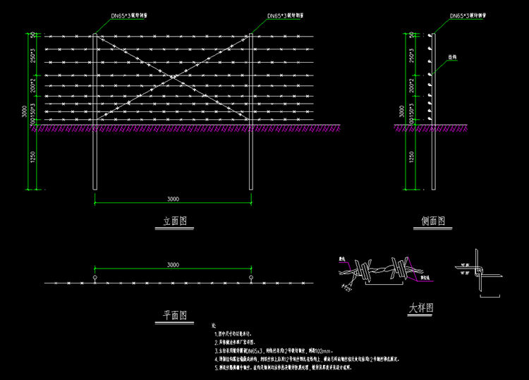2.刺铁丝隔离栅具体做法参照厂家详图。