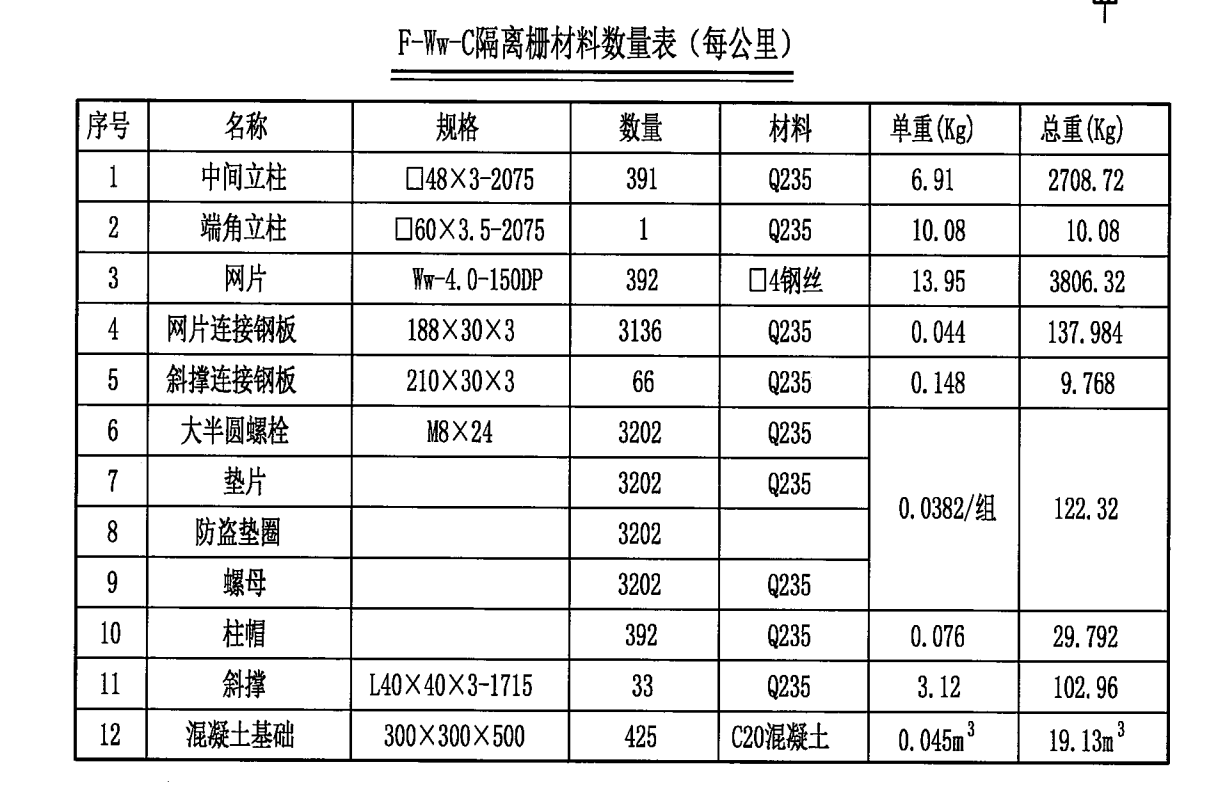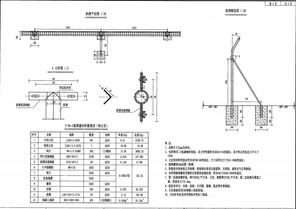 7、第一层热浸镀锌量:网片90克/平方米, 立柱、横梁等270克/平方米;第二层涂塑为聚氯乙烯,厚度应大于0.3mm。