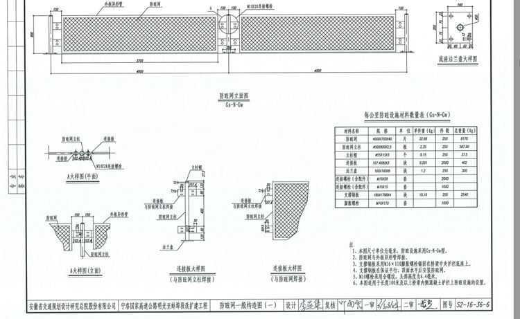 8、图中预埋钢板及锚固钢筋均计入桥梁工程,锚固钢筋需勾住桥梁护栏底座钢筋并与之焊接。