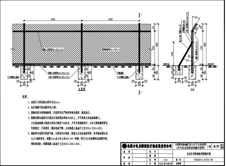 1.本图光伏区浸塑钢板网隔离栅尺寸单位除注明外均为mm。