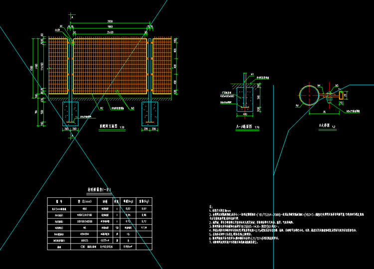 1.本图镀锌浸塑隔离栅尺寸单位为mm。