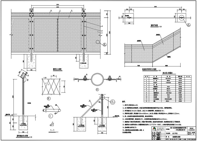 9.水库钢板网护栏基础混凝土标号为C25。