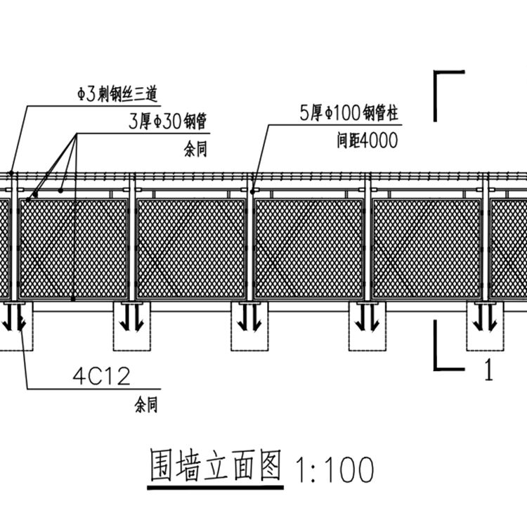 赤峰保税区围网专业生产厂家1、保税区围网立柱采用Φ100*5.0mm镀锌钢管制作而成,立柱间距4000mm,立柱焊接法兰盘,打膨胀螺丝固定立柱。2、保税区围网边框采用Φ30*3.0mm镀锌钢管制作而成。3、保税区围网网丝Φ5.0mm,网孔对角线100*100mm,网片焊接制作而成。4、保税区围网所有钢材使用Q235低碳钢材质,镀锌钢材,生产完成后表面浸塑绿色防腐工艺处理,防腐年限15年。
