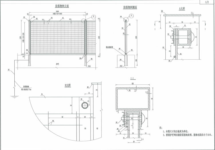 1、本图高架桥防抛网尺寸均以毫米为单位。