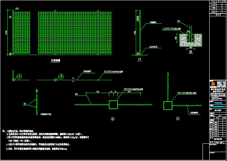 2.钢丝网围墙立柱采用50X50方形冷弯空心型钢,材料为连续热镀锌钢板,镀锌量≥120g/㎡(双面)。