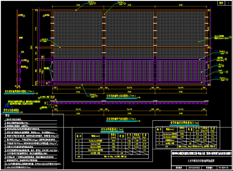 2.人行天桥防抛网钢材采用镀锌钢管材料Q235C。