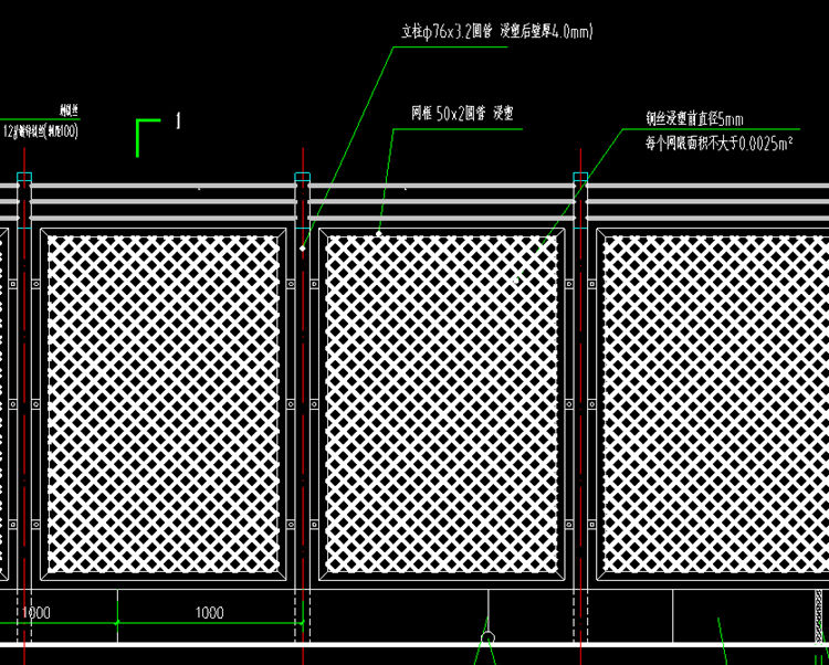 2、热镀锌浸塑防护网绝对标高:围墙定位坐标和绝对标高详见总平面施工图。
