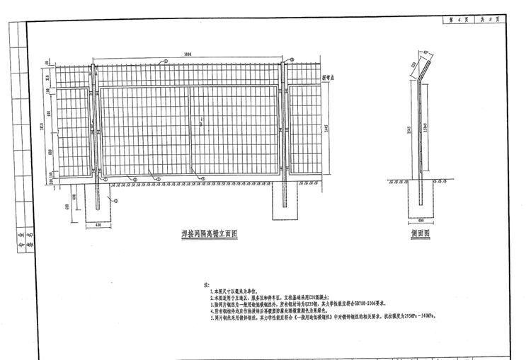 3.焊接网隔离栅除网片钢丝为一般用途低碳钢丝外,所有钢材均为Q235钢,其力学性能应符合GB700-2006要求。