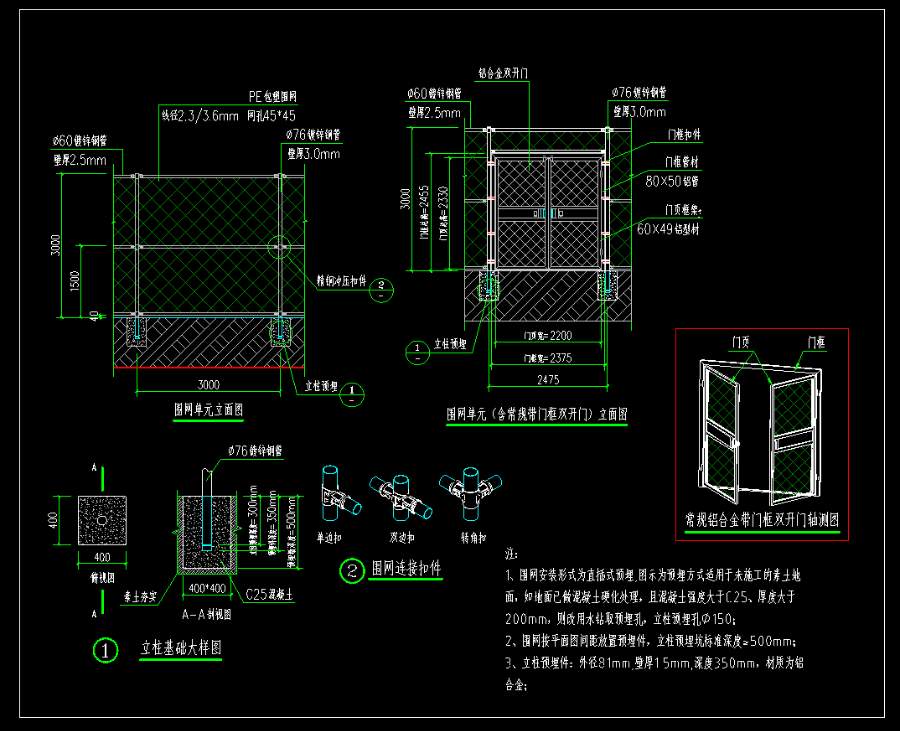 10、围网按平面图间距放置预埋件,立柱预埋坑标准深度≥500mm。