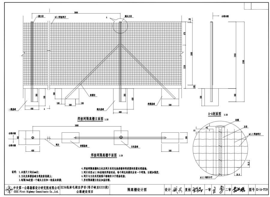 4.焊接网隔离栅的立柱及网片采用先热浸镀锌再浸塑的防腐处理措施。