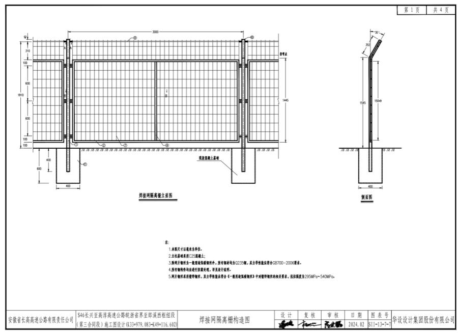 3.除网片钢丝为一般用途低碳钢丝外,所有钢材均为Q235钢,其力学性能应符合GB700-2006要求。