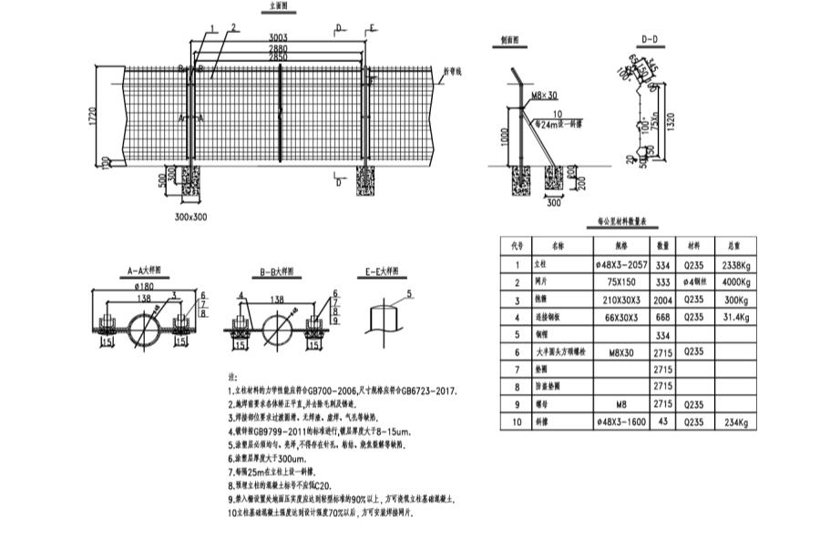 1.立柱材料的力学性能应符合GB700-2006寸规格应符合GB6723-2017。