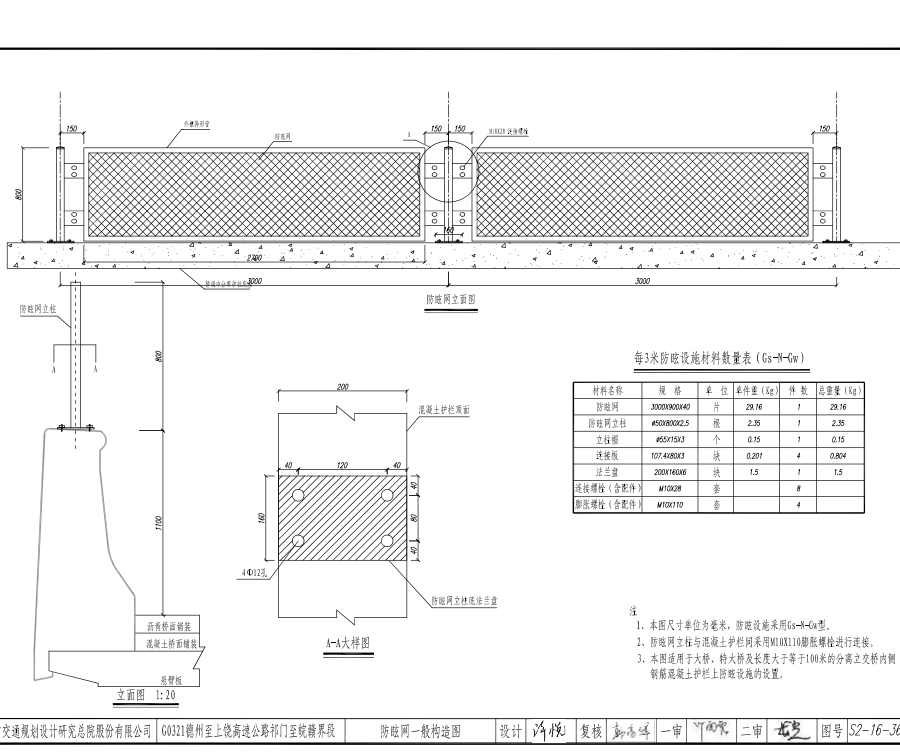 3、本图适用于大桥、特大桥及长度大于等于100米的分离立交桥内侧钢筋混凝土护栏上防眩设施的设置。