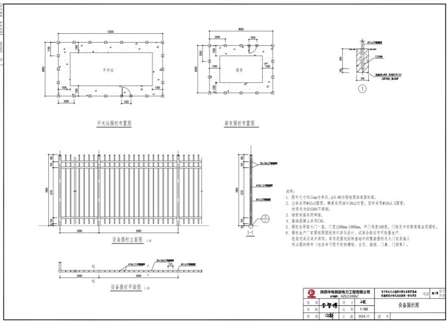 6.围栏生产厂家需按照图纸进行深化设计、试装合格后方可批量生产。组装完成后成片供货,供货范围包括除基础外的整套围栏及大门安装施工。所必需的附件(包含并不限于防拆螺栓、合页、插销、门鼻、门锁等)。