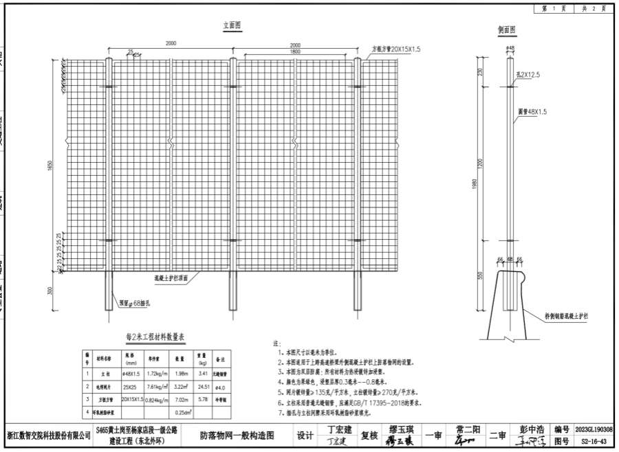 2、本图适用于上跨高速桥梁外侧混凝土护栏上防落物网的设置。