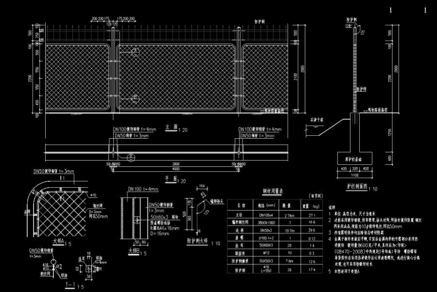 2、边框采用镀锌钢管、转弯煨弯、接头对焊, 焊接处镀锌防腐,钢丝网采用成品,规格为10#镀锌铁丝,网孔50mm。