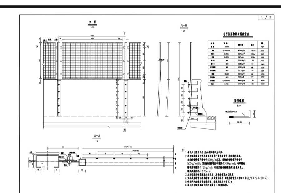 2.所有钢构件及电焊网表面必须进行先热浸镀锌,再涂塑的处理。立柱的镀锌量不得低于600g/㎡、边框的镀锌量不得低于500g/㎡、紧固件的镀锌量不得低于350g/㎡、电焊网的镀锌量不得低于125g/㎡、采用聚酯材料镀塑成5号果绿色,镀塑层厚度不小于76umm。