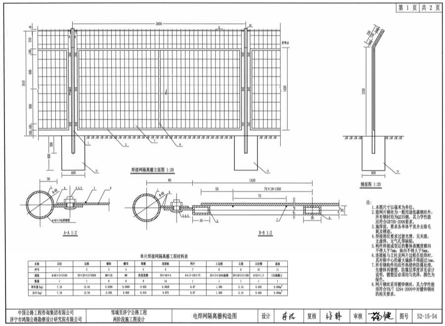 2.除网片钢丝为一般用途低碳钢丝外所有钢材均为Q235钢,其力学性能应符合GB700-2006要求。