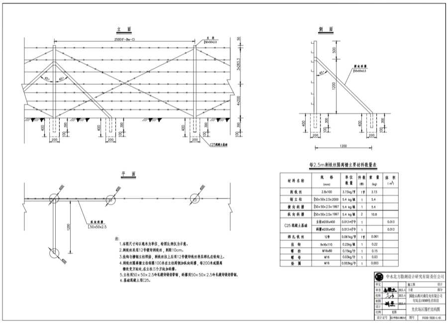 5.立柱用50x50x2.5冷轧镀锌镁铝带钢,斜撑用50x50x2.5冷轧镀锌镁铝带钢。