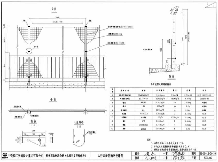 1、本图尺寸单位以mm计,本图比例为1:20。